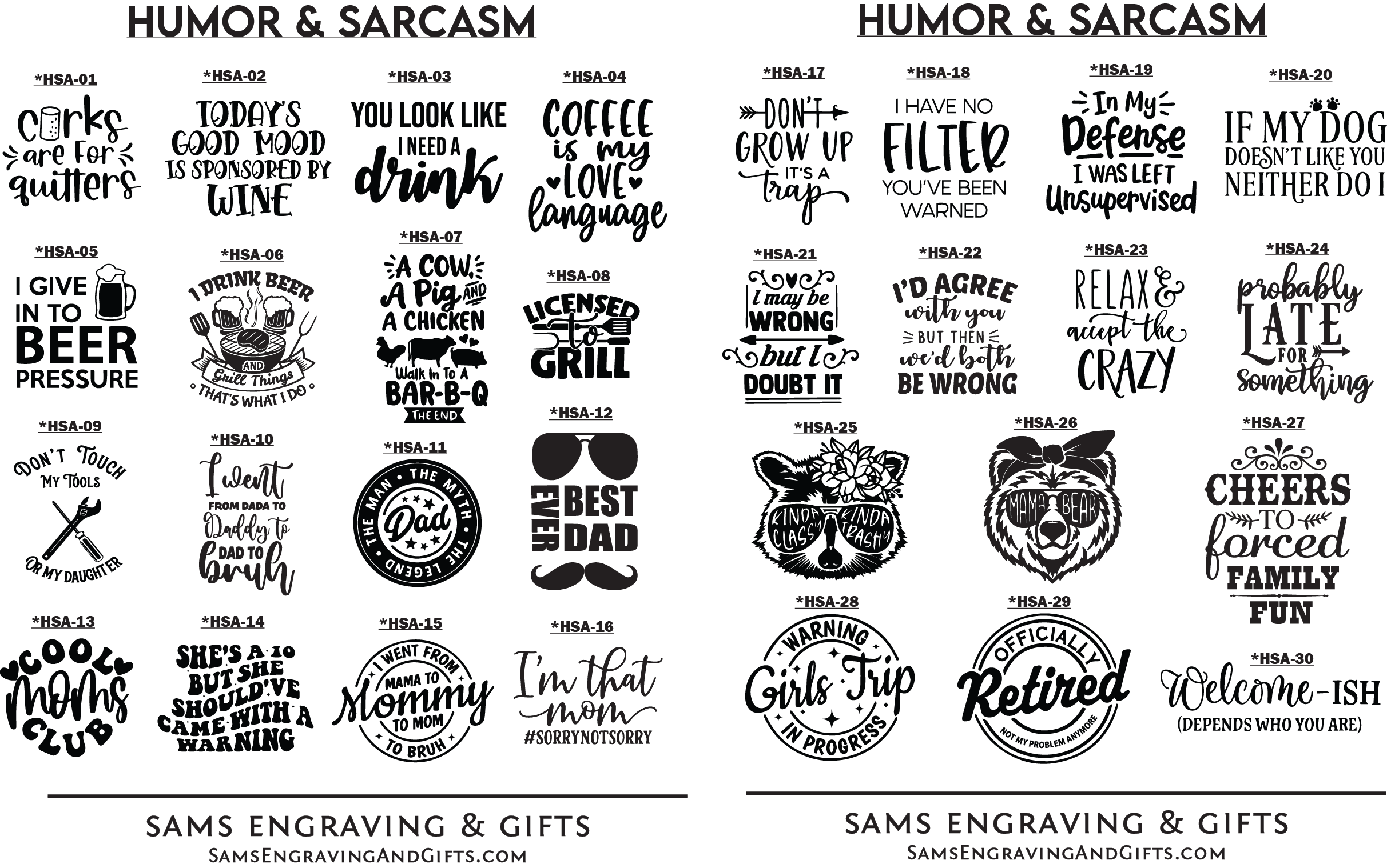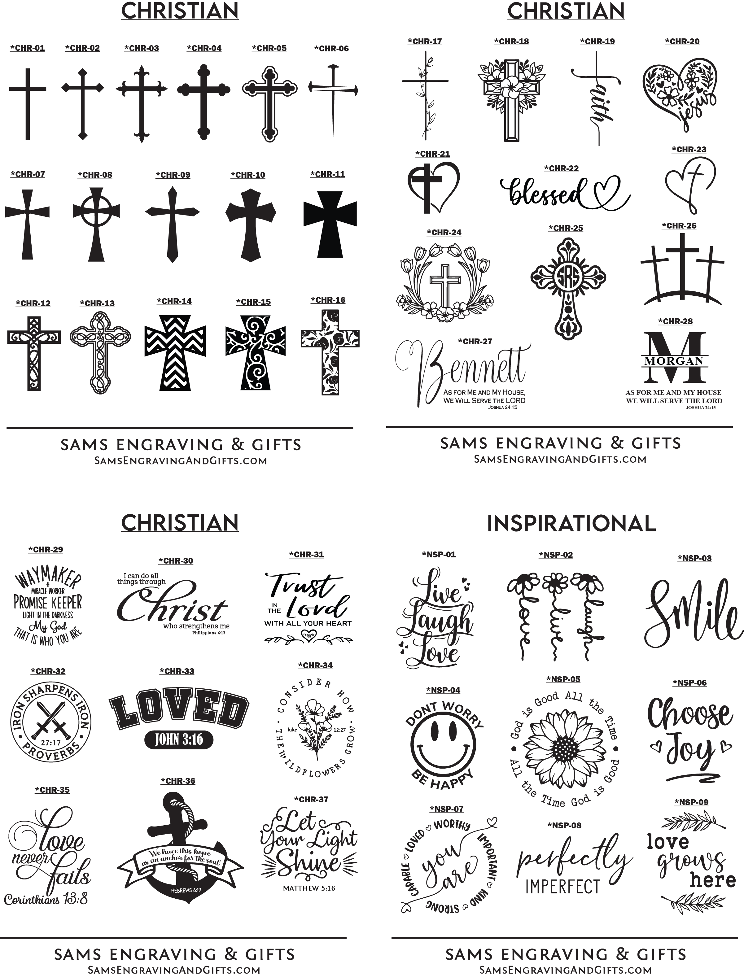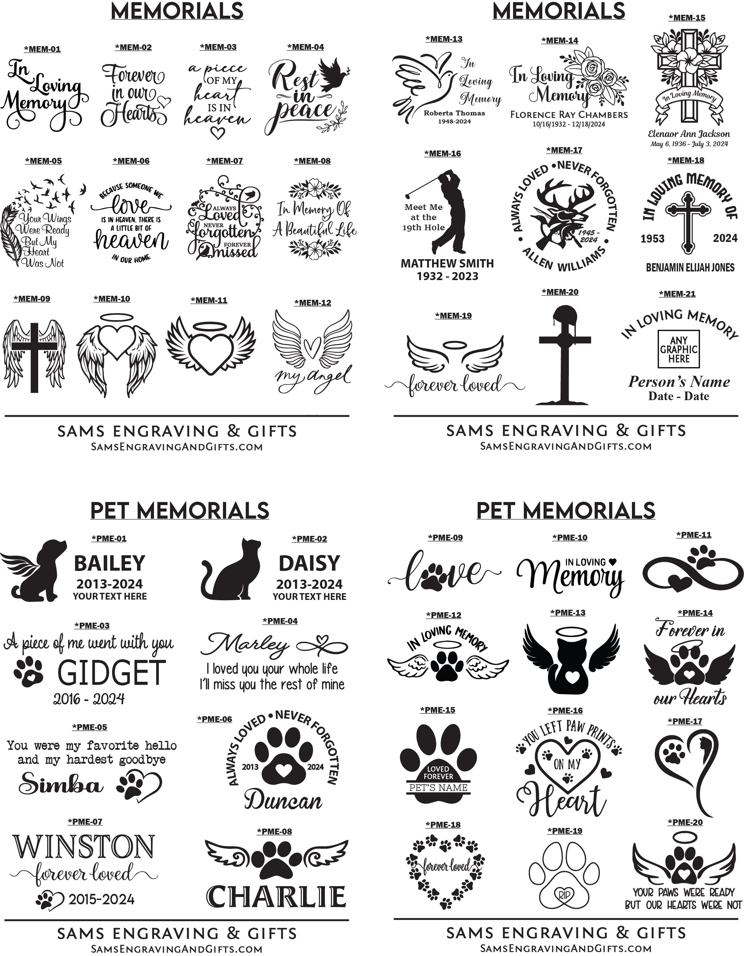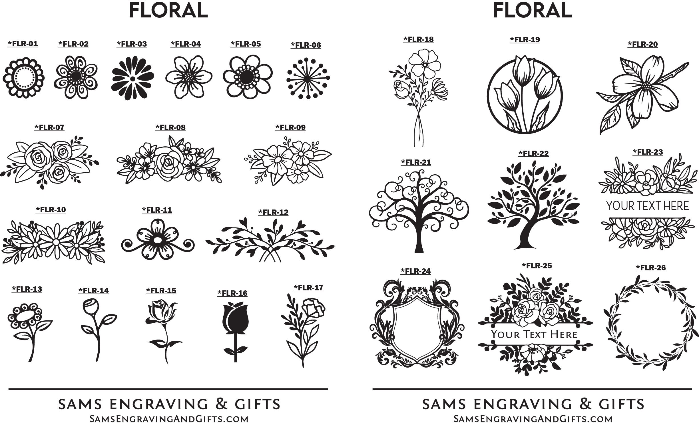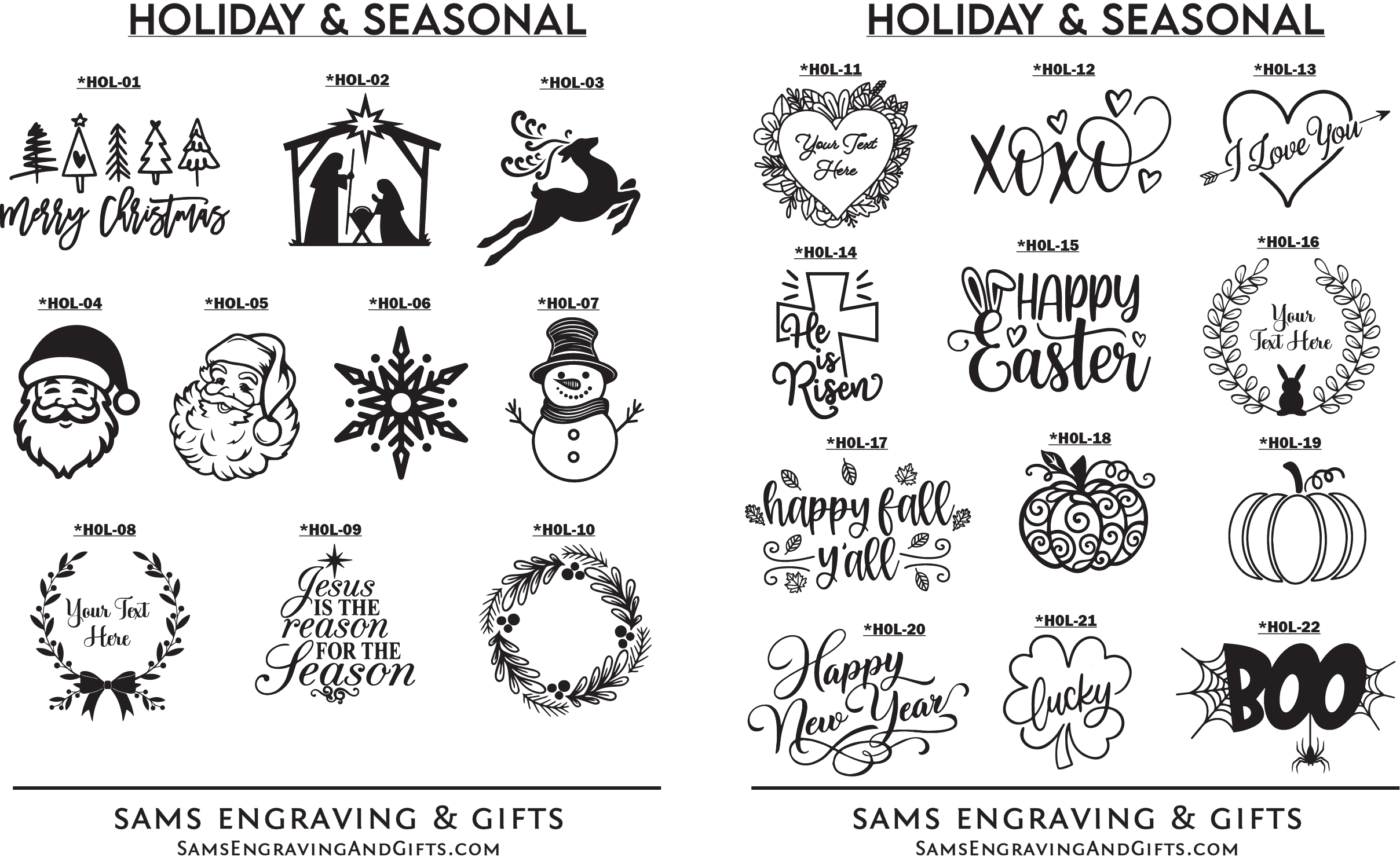 Designs can be personalized with your information on any of our products. Please select your desired font and/or design choice. Enter your selection number(s) in the "Personalization Box" when you check-out. You can also upload your own design/logo. *If images below are blurred, try using a different browser or view on a mobile device. Please contact us if you experience any issues.